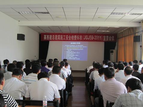 7月7日至8日,總公司在萊西四樓會議室舉行建筑施工安全檢查標(biāo)準(zhǔn)(JGJ59-2011)培訓(xùn),公司總經(jīng)理孫涌、黨委書記薛丕勝、副總經(jīng)理趙成福、姜民、于振方、趙青山、有關(guān)處室負(fù)責(zé)人、各分公司經(jīng)理、項目經(jīng)理、主任工程師、安全員共計200余人參加了培訓(xùn)學(xué)習(xí)。