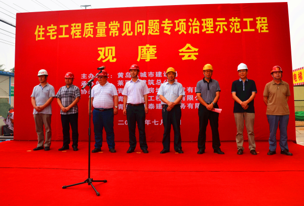 7月1日,住宅工程質量常見問題專項治理示范工程觀摩會在我公司李明項目部施工的云龍港灣工程召開。青島市建筑工程管理局總工程師孫憲閣、青島市質監(jiān)站總工程師崔浩,黃島區(qū)建設局副局長薛旻傳、區(qū)建管辦主任張偉等有關領導到會,公司董事長孫涌出席會議,副總經(jīng)理于振方在會議上作了介紹發(fā)言,開發(fā)、監(jiān)理、施工單位1000余人參加了觀摩會。