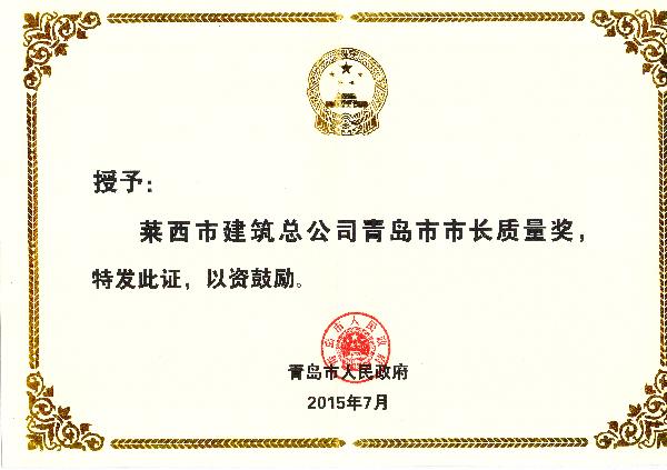 我公司榮獲2014年度青島市“市長質(zhì)量獎”