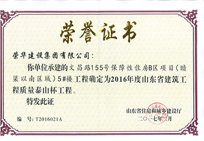 日前,山東省住房和城鄉(xiāng)建設(shè)廳公布了2016年度山東省工程質(zhì)量獎獲獎名單,集團(tuán)公司承建的德國企業(yè)中心、萊西市文化中心、文昌路155號保障性住房5#樓、海信天山郡小區(qū)13#樓榮獲“泰山杯”獎,青島港董家口港區(qū)航運服務(wù)設(shè)施展示中心、麥島居住區(qū)改造工程F區(qū)18#樓工程榮獲裝飾“泰山杯”獎,光大國際項目等六項工程榮獲“山東省建筑工程優(yōu)質(zhì)結(jié)構(gòu)”工程,獲獎數(shù)量再創(chuàng)歷史新高。萊西市文化中心榮獲2016年度“華東地區(qū)優(yōu)質(zhì)工程獎”