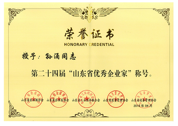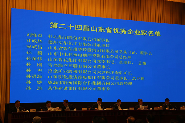 中國企業(yè)聯(lián)合會常務(wù)副會長兼理事長朱宏任、山東省企業(yè)聯(lián)合會名譽會長李書紳、淄博市委副書記、市長于海田、山東省經(jīng)信委副主任王萬良等領(lǐng)導(dǎo)出席會議。會議由山東省經(jīng)信委副主任王萬良主持,大會并對“第二十四屆山東省優(yōu)秀企業(yè)家”進(jìn)行了表彰。董事長孫涌被授予“第二十四屆山東省優(yōu)秀企業(yè)家”榮譽稱號并上臺領(lǐng)獎。本屆“山東省優(yōu)秀企業(yè)家”評選活動旨在深入貫徹中共中央、國務(wù)院《關(guān)于營造企業(yè)家健康成長環(huán)境弘揚優(yōu)秀企業(yè)家精神更好發(fā)揮企業(yè)家作用的意見》文件精神,積極落實省委、省政府實施新舊動能轉(zhuǎn)換重大工程戰(zhàn)略部署,不斷激發(fā)全省廣大企業(yè)家創(chuàng)新創(chuàng)業(yè)的積極性、主動性和創(chuàng)造性,大力弘揚企業(yè)家創(chuàng)新精神和工匠精神,充分發(fā)揮優(yōu)秀企業(yè)家示范引領(lǐng)作用。