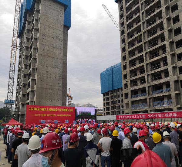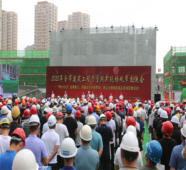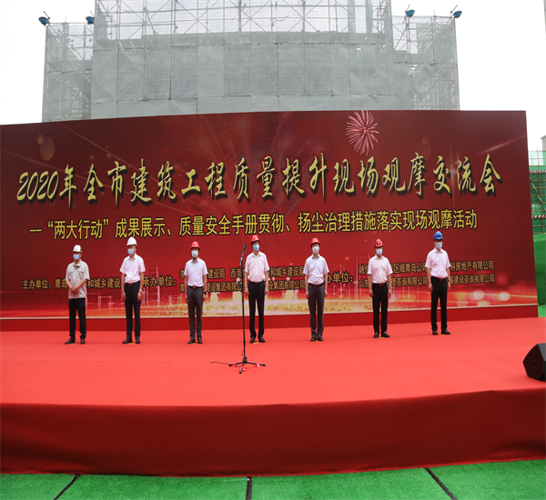 6月30日上午,2020年全市建筑工程質(zhì)量提升現(xiàn)場(chǎng)觀摩交流會(huì)暨“兩大行動(dòng)”成果展示、質(zhì)量安全手冊(cè)貫徹、揚(yáng)塵治理措施落實(shí)現(xiàn)場(chǎng)觀摩會(huì)在李滄區(qū)和西海岸新區(qū)同步召開,六公司陳顯峰項(xiàng)目部施工的萬科新都會(huì)二期項(xiàng)目成為觀摩會(huì)場(chǎng)。市住建局局長陳勇、副局長劉玉勇,李滄區(qū)委常委、副區(qū)長劉學(xué)輝,李滄區(qū)建設(shè)局局長周誠等市及各區(qū)市住建局主管部門、全市建筑工程質(zhì)量監(jiān)督機(jī)構(gòu)和部門建設(shè)、施工、監(jiān)理企業(yè)分管領(lǐng)導(dǎo)和質(zhì)量技術(shù)部門負(fù)責(zé)人、項(xiàng)目負(fù)責(zé)人按照疫情防控要求分時(shí)間,分批次參加了現(xiàn)場(chǎng)會(huì)。集團(tuán)公司董事長孫涌出席主會(huì)場(chǎng)觀摩會(huì)并致辭,副總裁周兵一、副總裁兼北方公司總經(jīng)理劉世海、六分公司總經(jīng)理丁秀爭(zhēng)陪同參會(huì)。