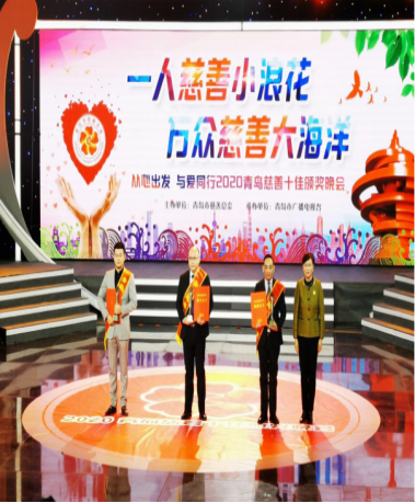 一人慈善小浪花,萬眾慈善大海洋。1月7日下午,由青島市慈善總會主辦的2020年度“青島市慈善十佳”頒獎晚會在青島電視臺800平米演播廳舉行,晚會對2020年度在青島慈善公益領域作出突出貢獻的單位、個人和項目進行表彰。集團公司榮獲“2020青島慈善十佳”和“抗擊新冠肺炎疫情捐贈貢獻獎”。青島市人大常委會副主任劉圣珍、市政協(xié)副主席卞建平、市慈善總會會長王偉出席活動并為獲獎單位、個人和慈善項目頒獎。集團公司總裁趙成福同志上臺領獎并接受電視臺采訪。