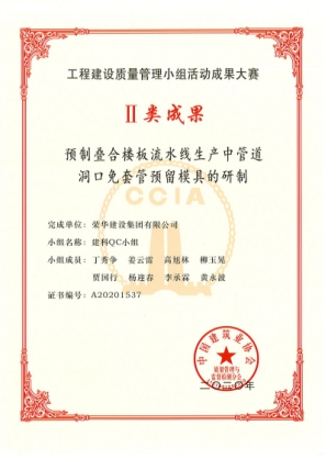 9月28日,中國建筑業(yè)協(xié)會公布2020年度工程建設優(yōu)秀質量管理小組活動成果大賽名單,集團公司獲Ⅱ類成果1項:建科QC小組-預制疊合樓板流水線生產中管道洞口免套管預留模具的研制,獲Ⅲ類成果1項:中英創(chuàng)新產業(yè)園項目QC小組-提高被動式超低能耗建筑坡屋面保溫施工質量。
