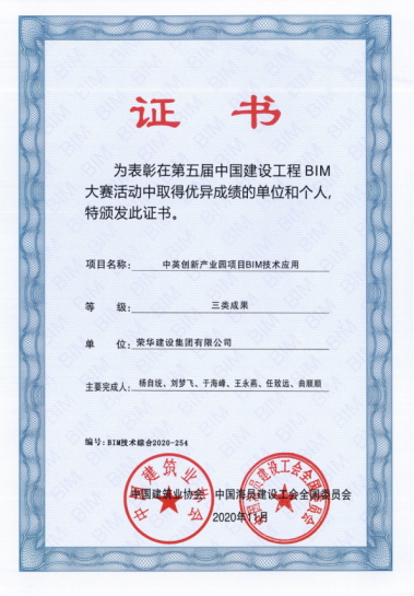 2020年12月16日,中國(guó)建筑業(yè)協(xié)會(huì)于武漢召開(kāi)“第五屆建設(shè)工程BIM技術(shù)應(yīng)用交流會(huì)”,集團(tuán)BIM中心主編完成的《淮北吾悅廣場(chǎng)BIM技術(shù)應(yīng)用》、《中英創(chuàng)新產(chǎn)業(yè)園項(xiàng)目BIM技術(shù)應(yīng)用》分別榮獲第五屆中國(guó)建設(shè)工程BIM大賽單項(xiàng)一等獎(jiǎng)和綜合三等獎(jiǎng)。